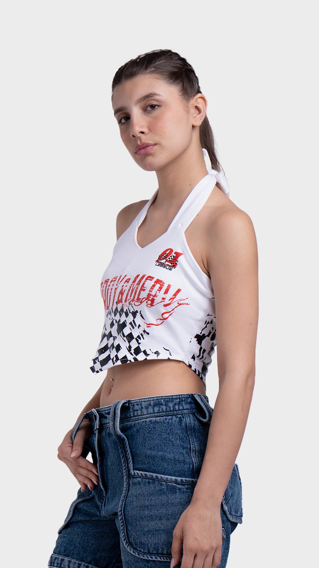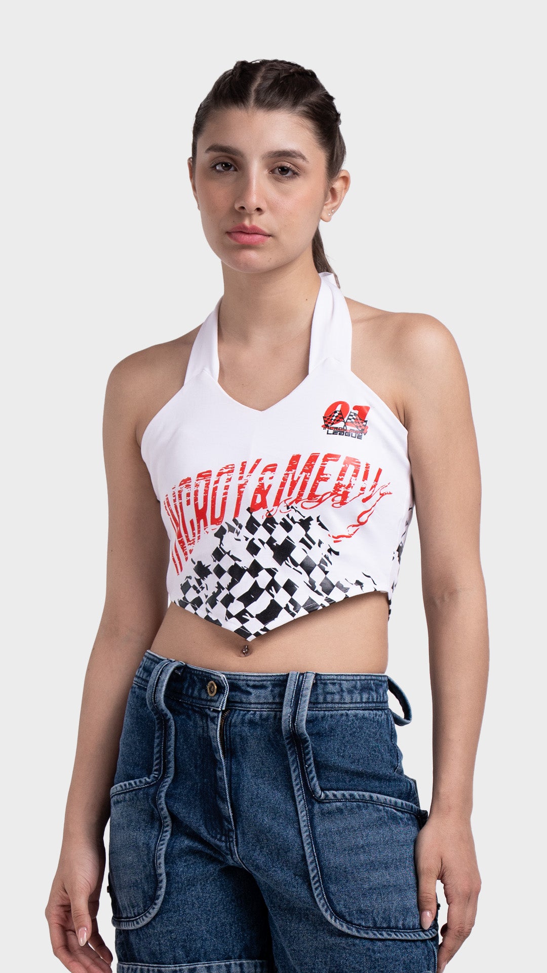 Welcome to the hot seat — the CHEER HEAD halter top is your license to…"