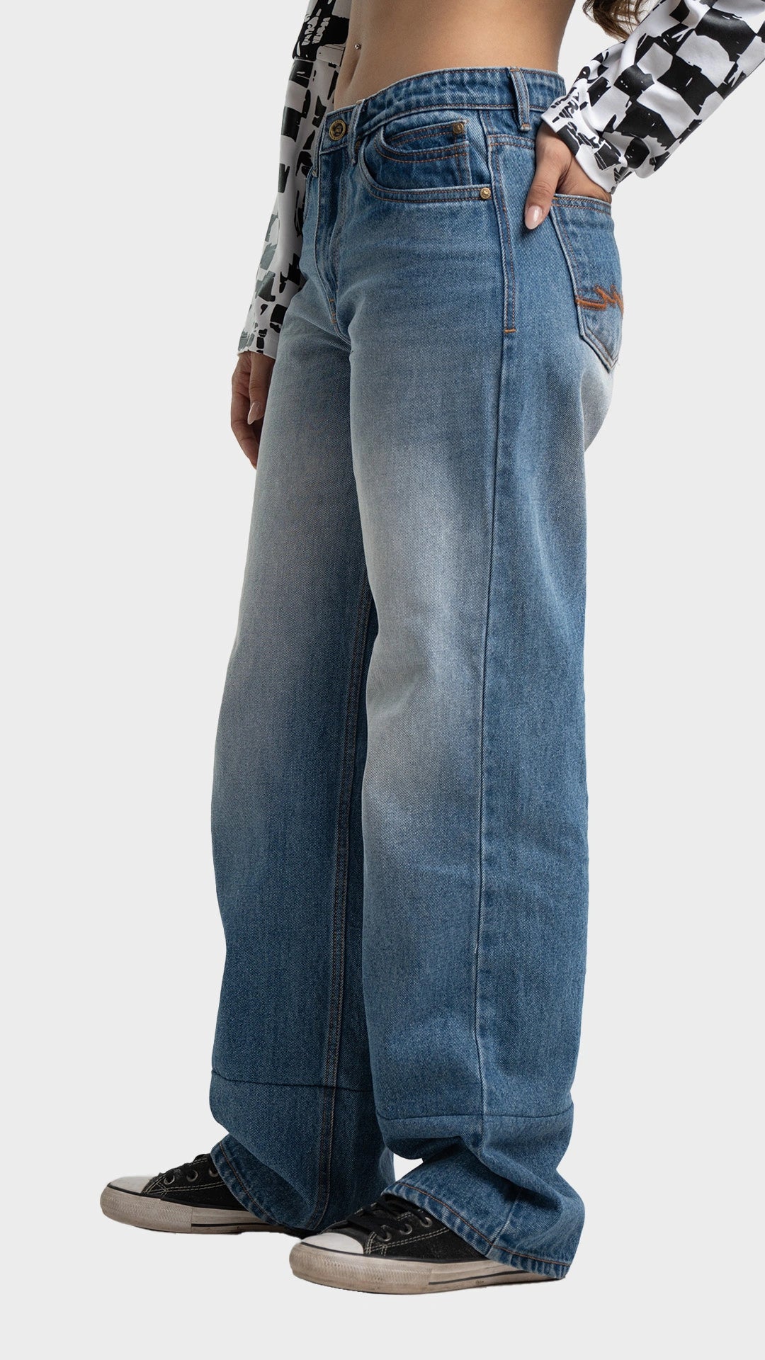 Meet the denim drop that doesn’t just walk — it stomps. The D1, D2, and D3 jeans serve throwback realness with Y2K roots and a modern flex. Designed to sit snug at the waist and flare out into bold wide legs, these jeans bring unapologetic volume to every step.