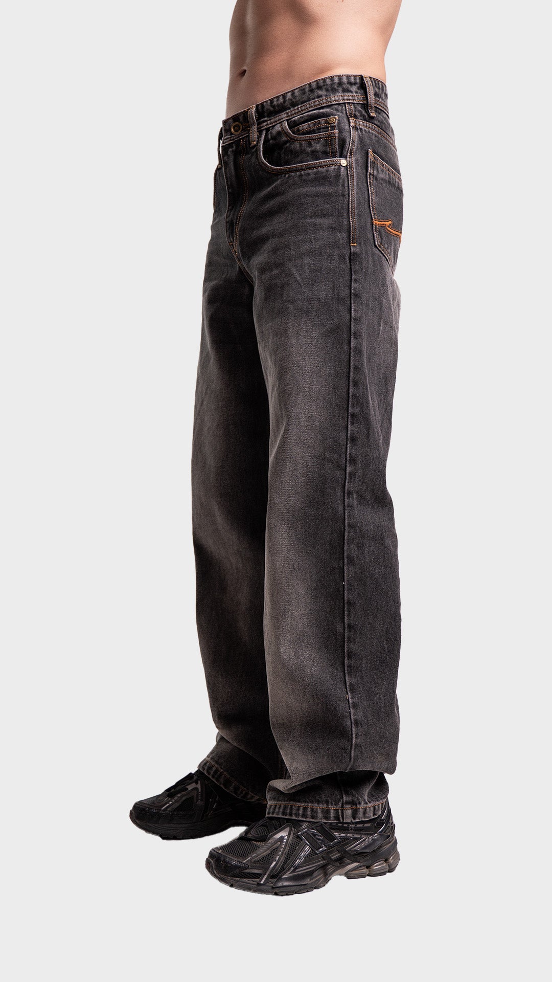 Introducing the D2 Denim in Smoked Gray, a relaxed silhouette crafted for everyday wear. Made from heavyweight 14‑ounce denim, these jeans are cut into a straight fit for a bold and comfortable rise. The smoked‑grey enzyme‑wash whiskers bring a vintage‑inspired aesthetic, with subtle fading that enhances the worn‑in character. Details include a designed coin pocket, contrasting stitching throughout, and the signature “IM” embroidery on the rear pocket for a refined finish.