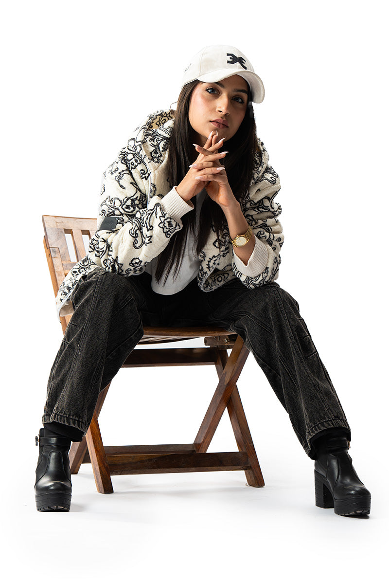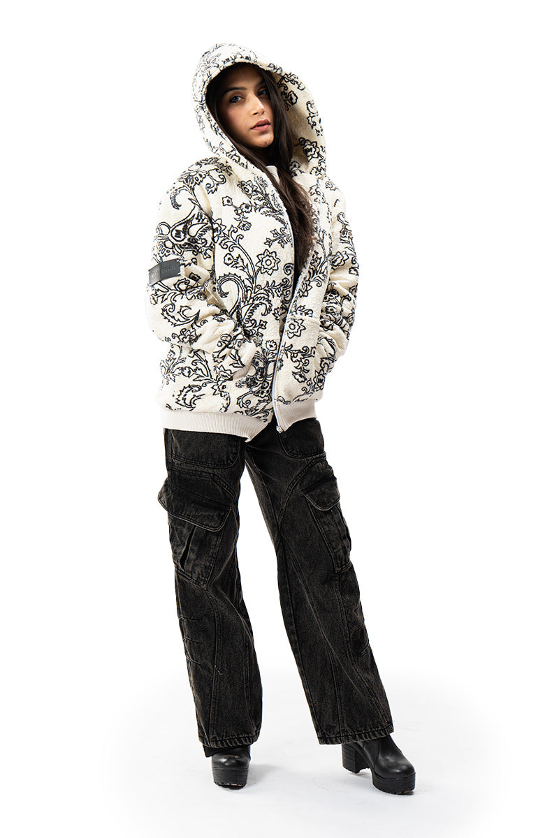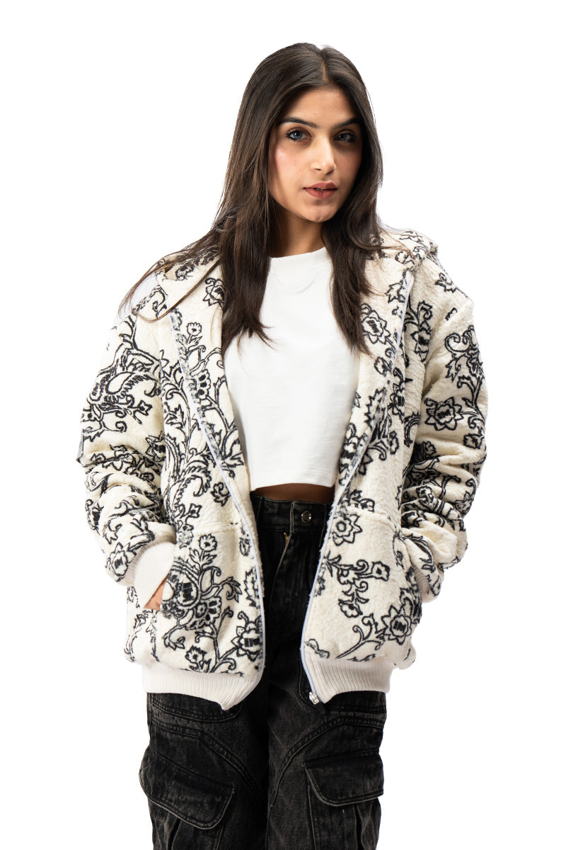 This jacket is crafted from 100% polyester Sherpa, offering warmth and.This jacket is crafted from 100% polyester Sherpa for optimal warmth