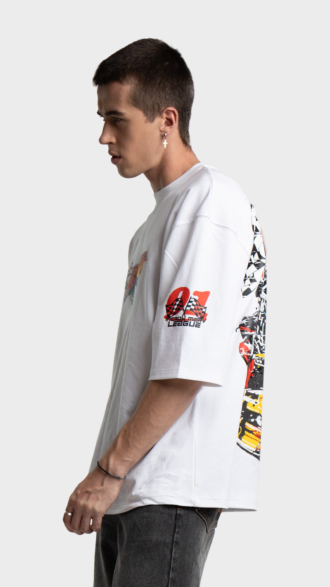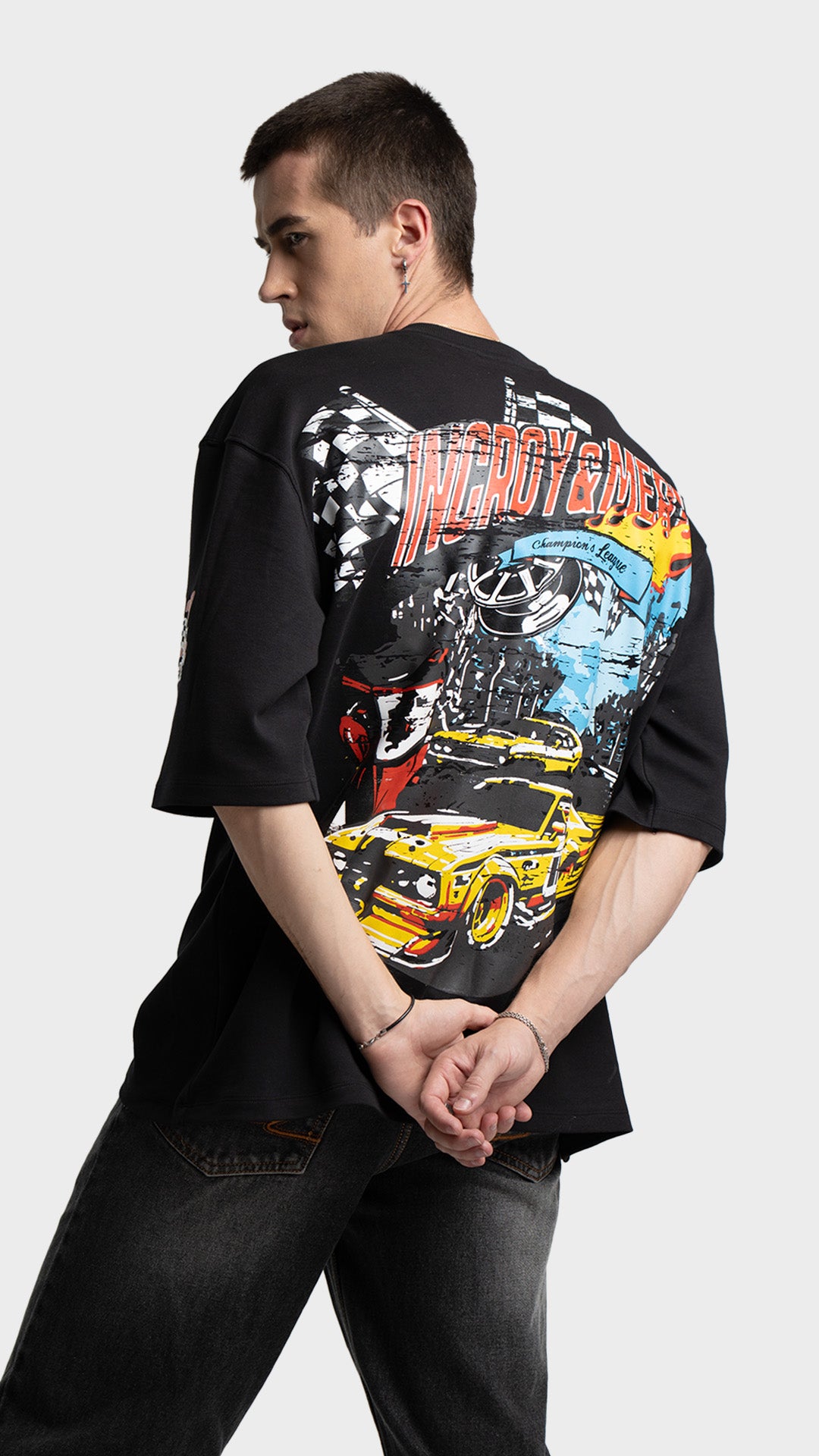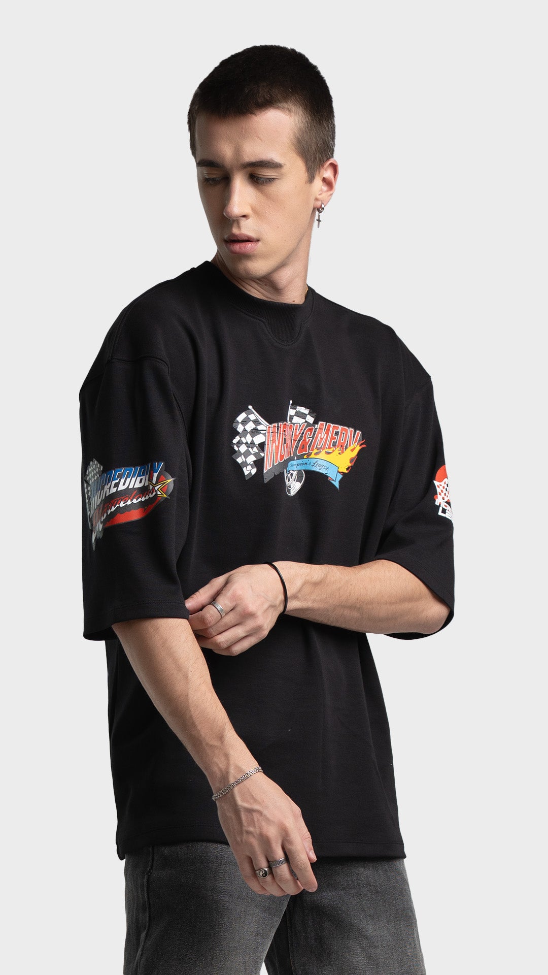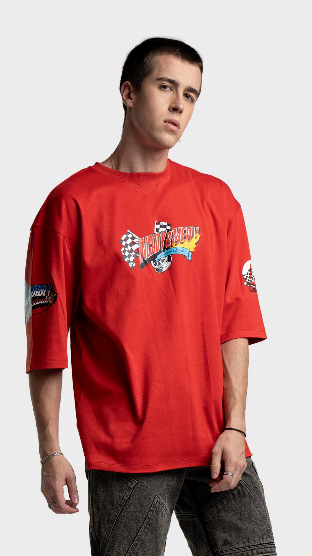 Introducing the Rage Oversized Half‑Sleeve Tee, crafted from premium 240 GSM cotton interlock jersey. This vibrant piece delivers bold energy with a clean luxury streetwear feel. It features striking racing‑inspired screen prints on the front, back, and sleeves, combined with a colorful block print for added visual impact. Designed for comfort, attitude, and a standout silhouette, this tee blends color and character effortlessly.