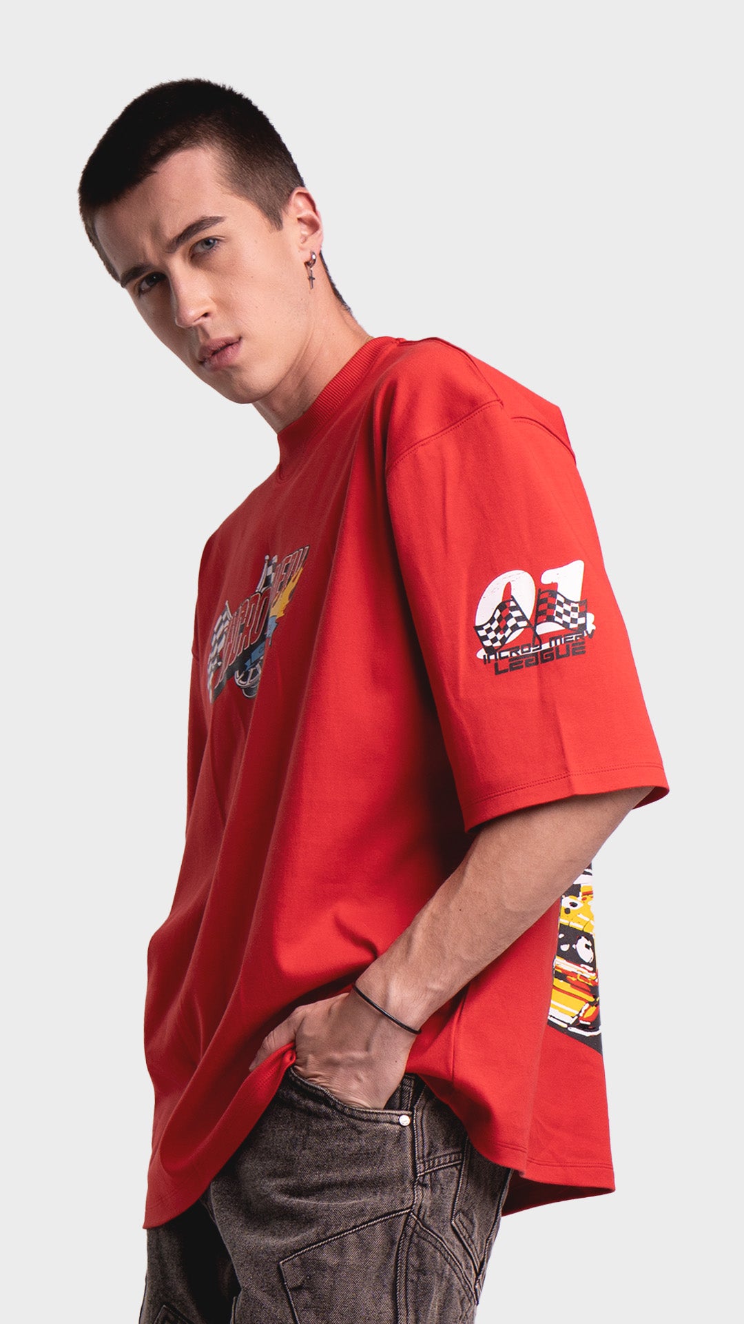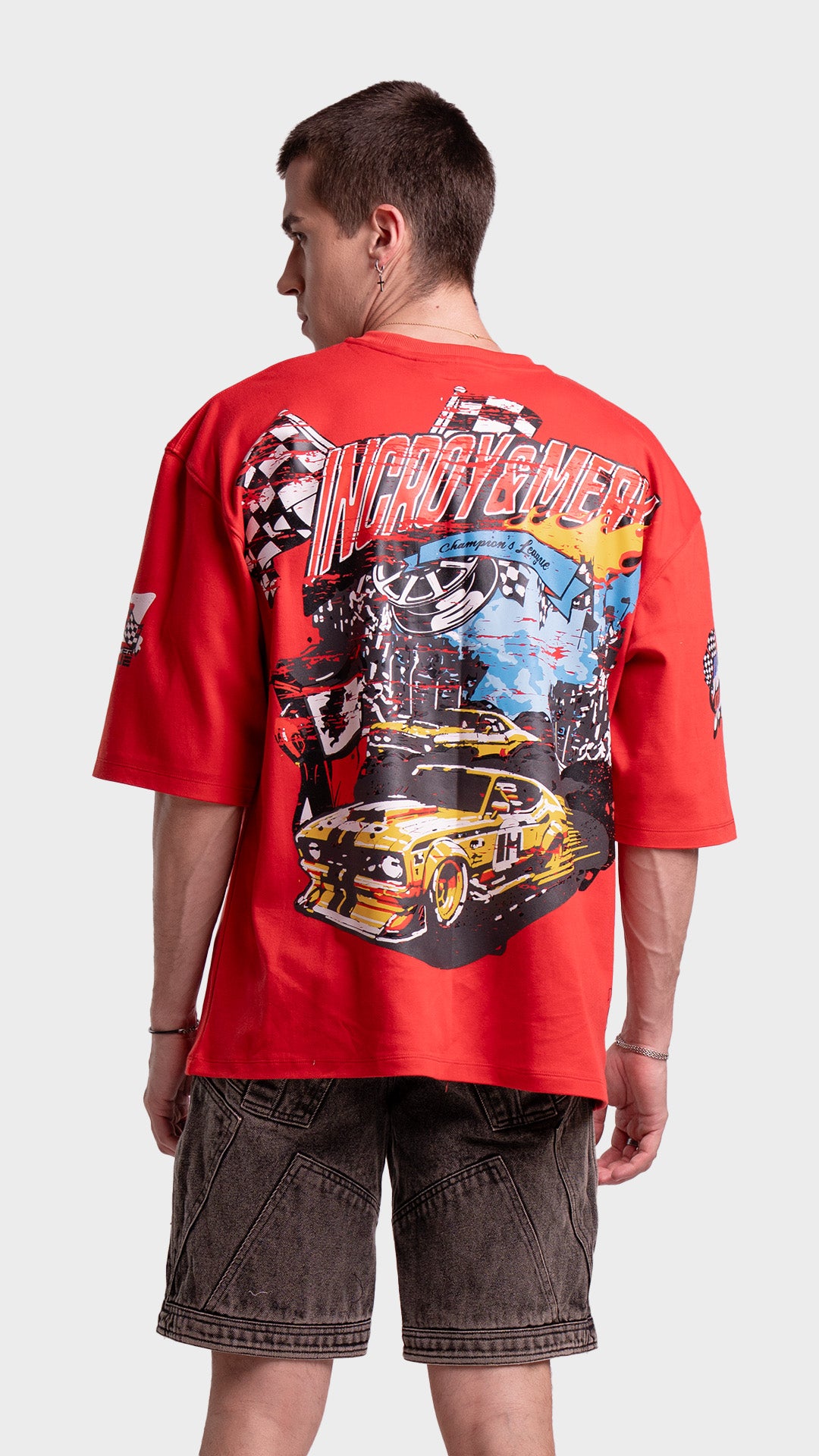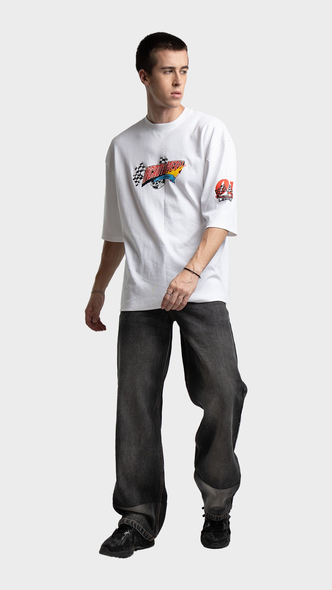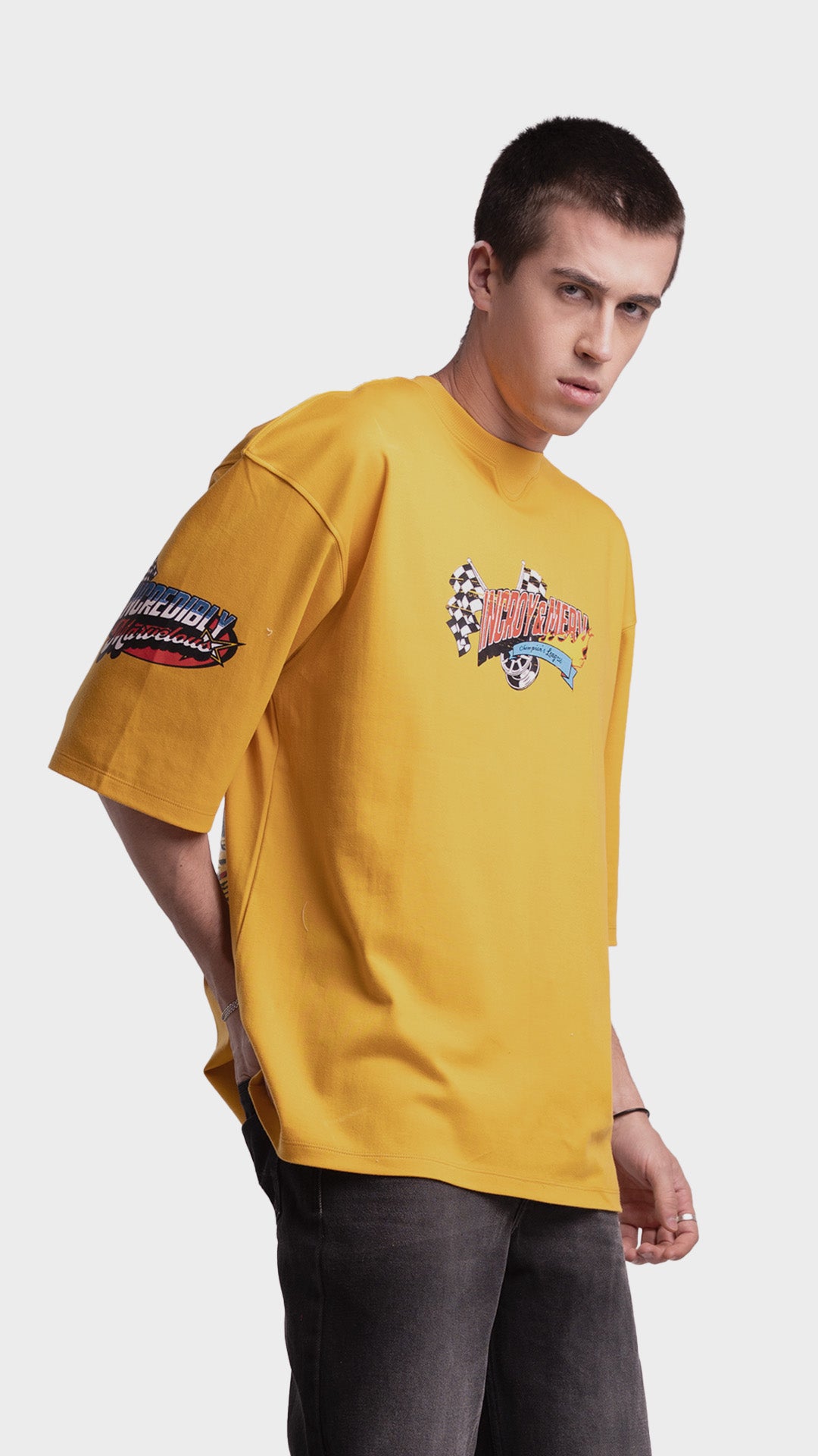 Introducing the Rage Oversized Half‑Sleeve Tee, crafted from premium 240 GSM cotton interlock jersey. This vibrant piece delivers bold energy with a clean luxury streetwear feel. It features striking racing‑inspired screen prints on the front, back, and sleeves, combined with a colorful block print for added visual impact. Designed for comfort, attitude, and a standout silhouette, this tee blends color and character effortlessly.