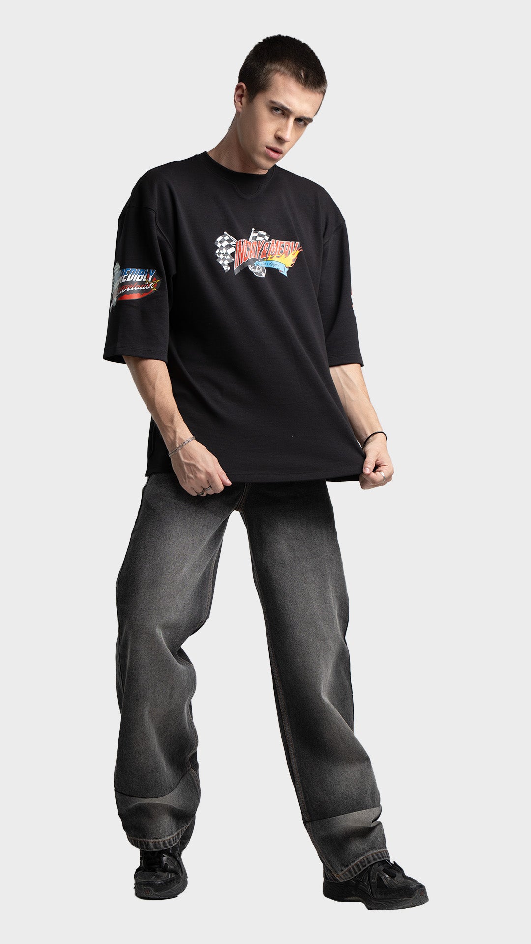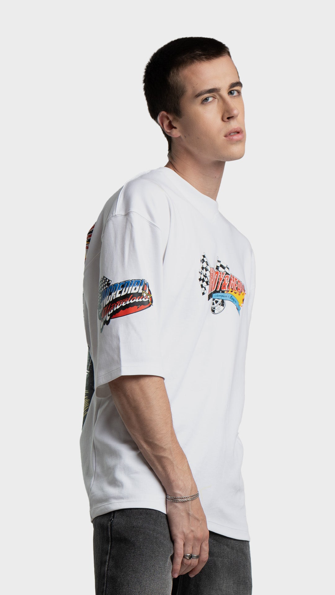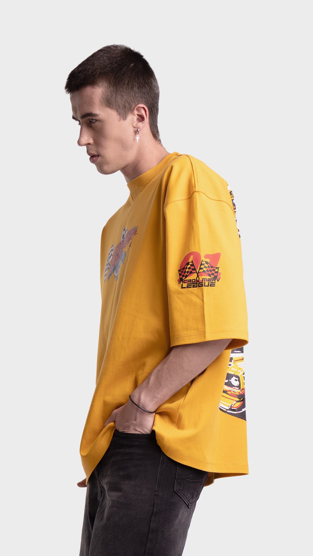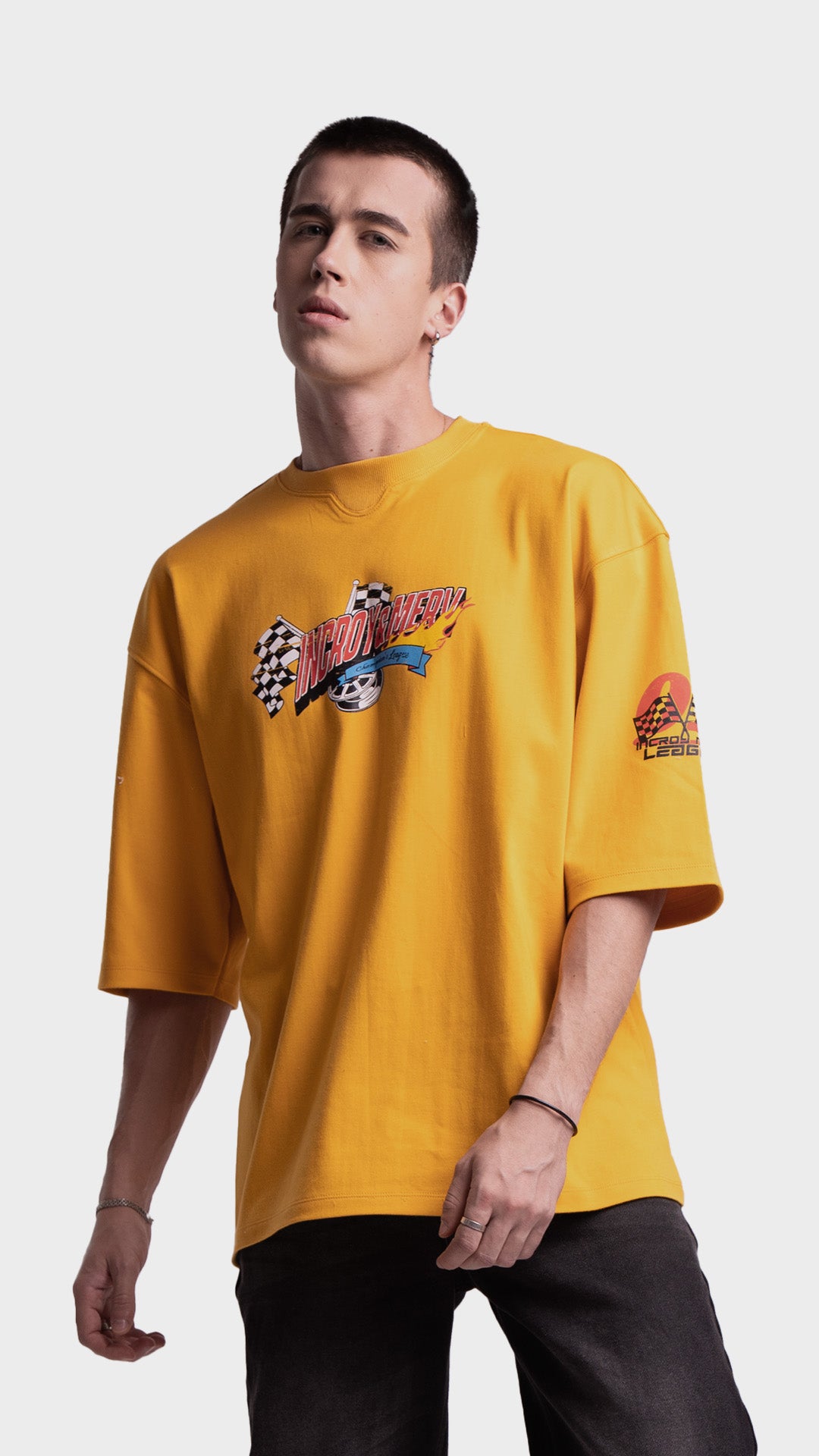 Introducing the Rage Oversized Half‑Sleeve Tee, crafted from premium 240 GSM cotton interlock jersey. This vibrant piece delivers bold energy with a clean luxury streetwear feel. It features striking racing‑inspired screen prints on the front, back, and sleeves, combined with a colorful block print for added visual impact. Designed for comfort, attitude, and a standout silhouette, this tee blends color and character effortlessly.