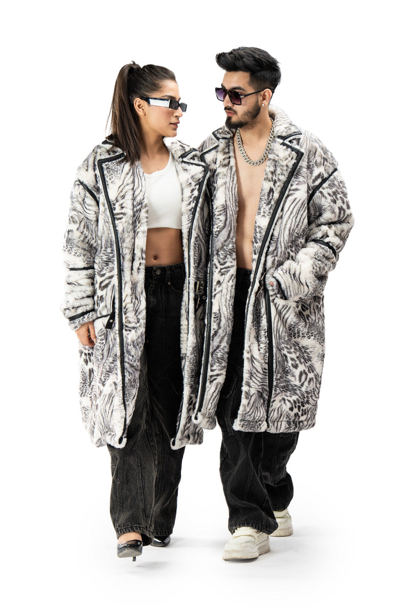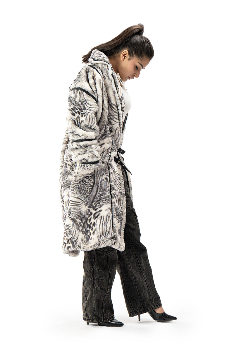 This piece features 100% polyester fur, complemented by a 100% polyester